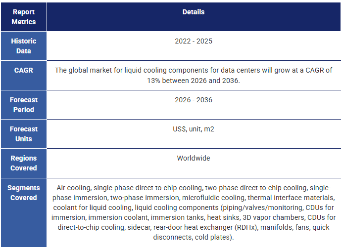 本レポートは、複数のソリューションカテゴリーにわたるデータセンター冷却技術に関する重要な市場情報を提供している。