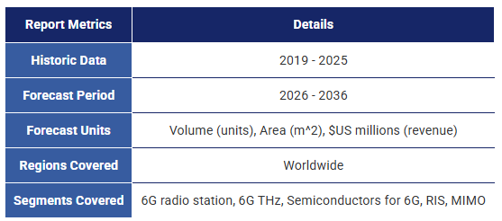6Gの技術、アプリケーション、市場に関する詳細は、IDTechExが新たに発表した6G市場調査レポートを参照されたい。「6G市場2026-2036:技術、動向、予測、プレーヤー」です。本レポートは、通信業界をカバーする長年の専門知識に基づき、最新の6G技術と市場開発動向、主要アプリケーション、プレイヤーの活動、業界展望に焦点を当て、読者に6G技術と市場の包括的な理解を提供することを目的としています。