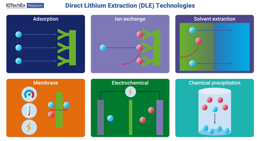 直接リチウム抽出技術の種類、出典:IDTechEx
