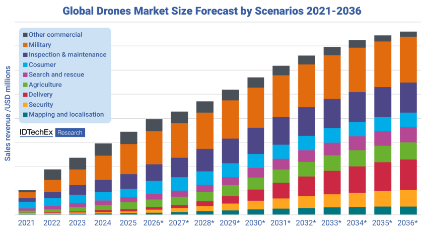 IDTechExは、完全に更新された10年間のドローン市場予測を提供しています