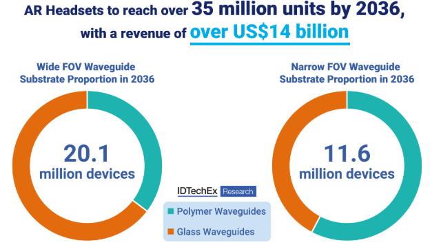 ARヘッドセット市場は2036年までに3,500万台超に達すると予測される。出典:IDTechEx