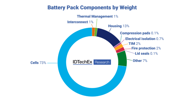 重量別バッテリーパック構成部品。出典:IDTechEx