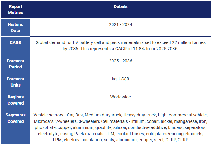 7.9.1. Battery pack material demand forecast for EVs 2021-2036 (kg)