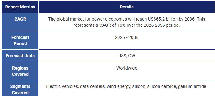 本レポートは、パワー半導体材料および主要なパワーエレクトロニクス用途に関する重要な市場情報を提供します。これには以下が含まれます
