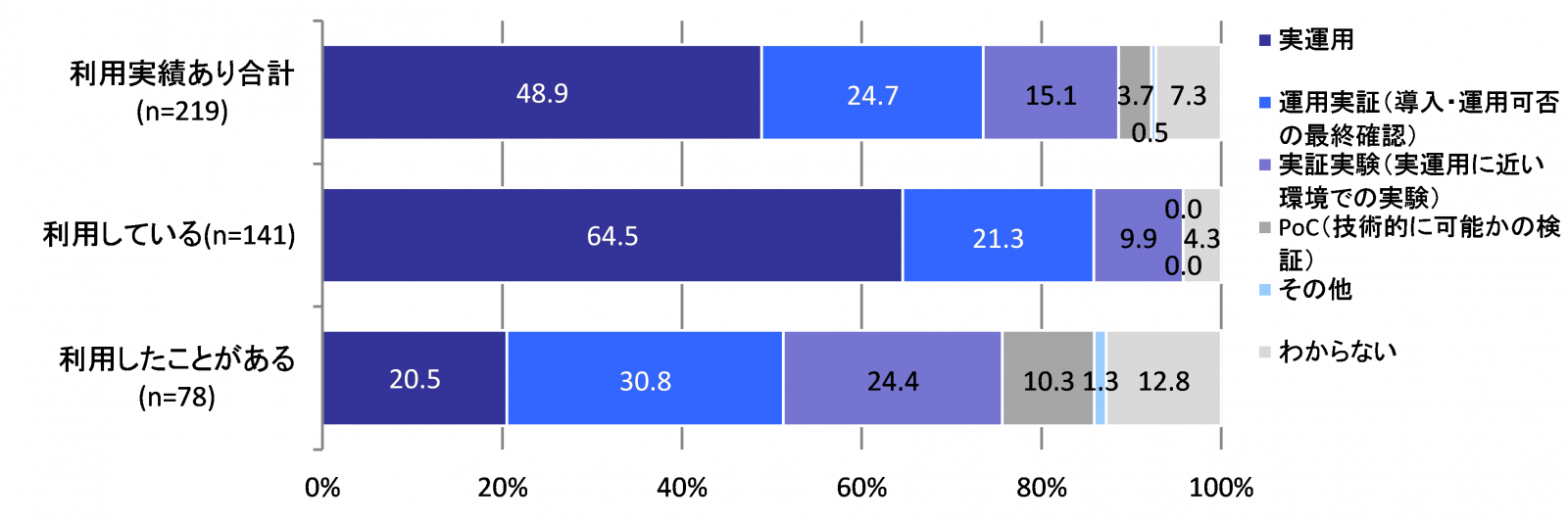 ■ドローン利用企業の7割以上がPoC(概念実証)を終えて実装フェーズに