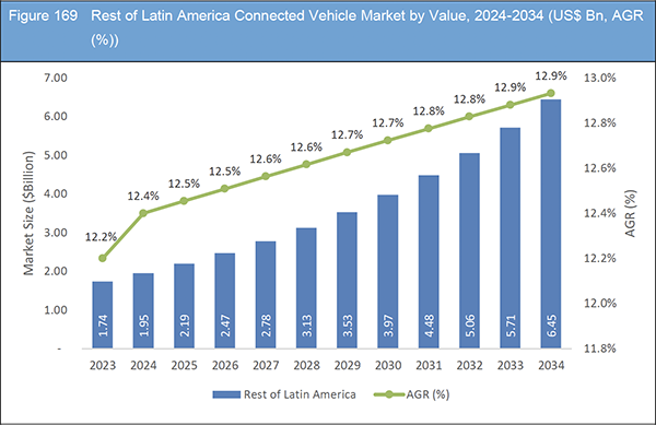 Figure 169 Rest of Latin America Connected Vehicle Market by Value, 2024-2034 (US$ Bn, AGR (%))