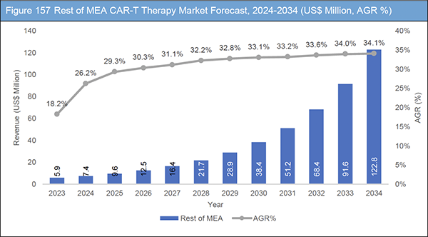 Figure 157 Rest of MEA CAR-T Therapy Market Forecast, 2024-2034 (US$ Million, AGR %)