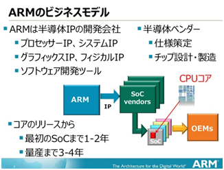 図1- ARM社 ビジネスモデル (出典スライドシェアhttp://www.slideshare.net/viopsjp/viops08-01ar-mv2)