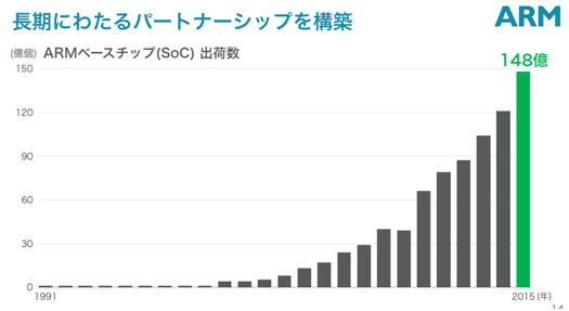 図2 – ARMベースチップ出荷数推移 (出典ソフトバンク発表資料)