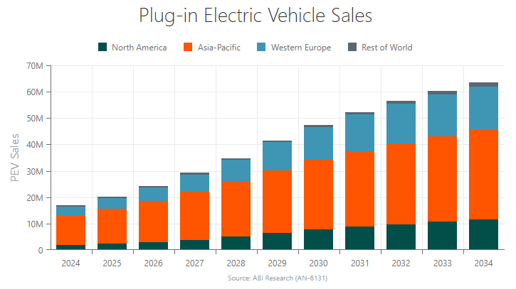 全体として、EV市場の見通しはポジティブで、大きな可能性を秘めた明確な上昇基調にある。しかし、ABIリサーチの最近の市場データ予測は、主要地域における短期的な市場成長の停滞を示している。